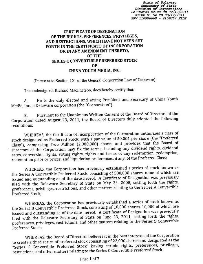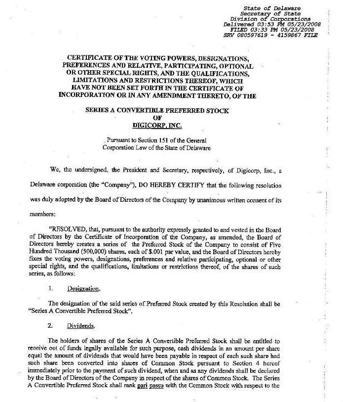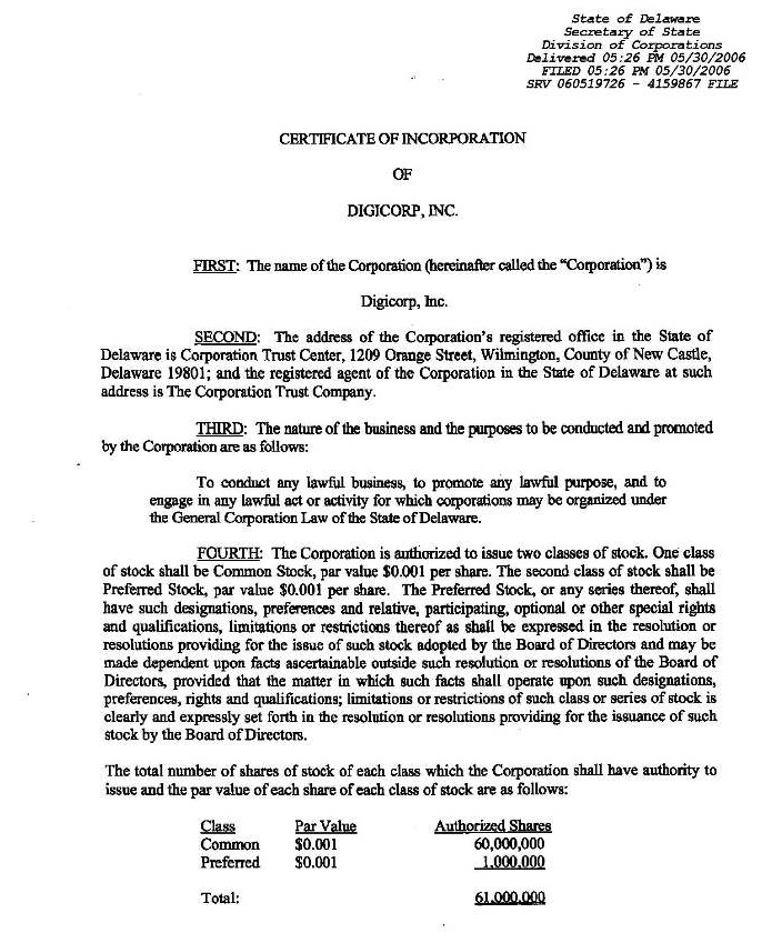 CERTIFICATE OF INCORPORATION AS AMENDED